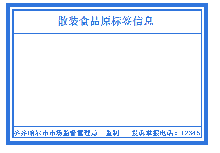 1.以上样式分为空白和带格式两种,空白格式应使用原包装上的食品信息标志,剪一下后粘贴于空白格式内进行公示,如原包装食品信息字体较小,应进行放大处理,方便消费者查看;也可使用标签打印机打印好后,粘贴于空白格式内;