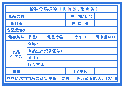 (此联保存期限不得少于食品保质期满后六个月) 齐齐哈尔市市场监督管理局监制
